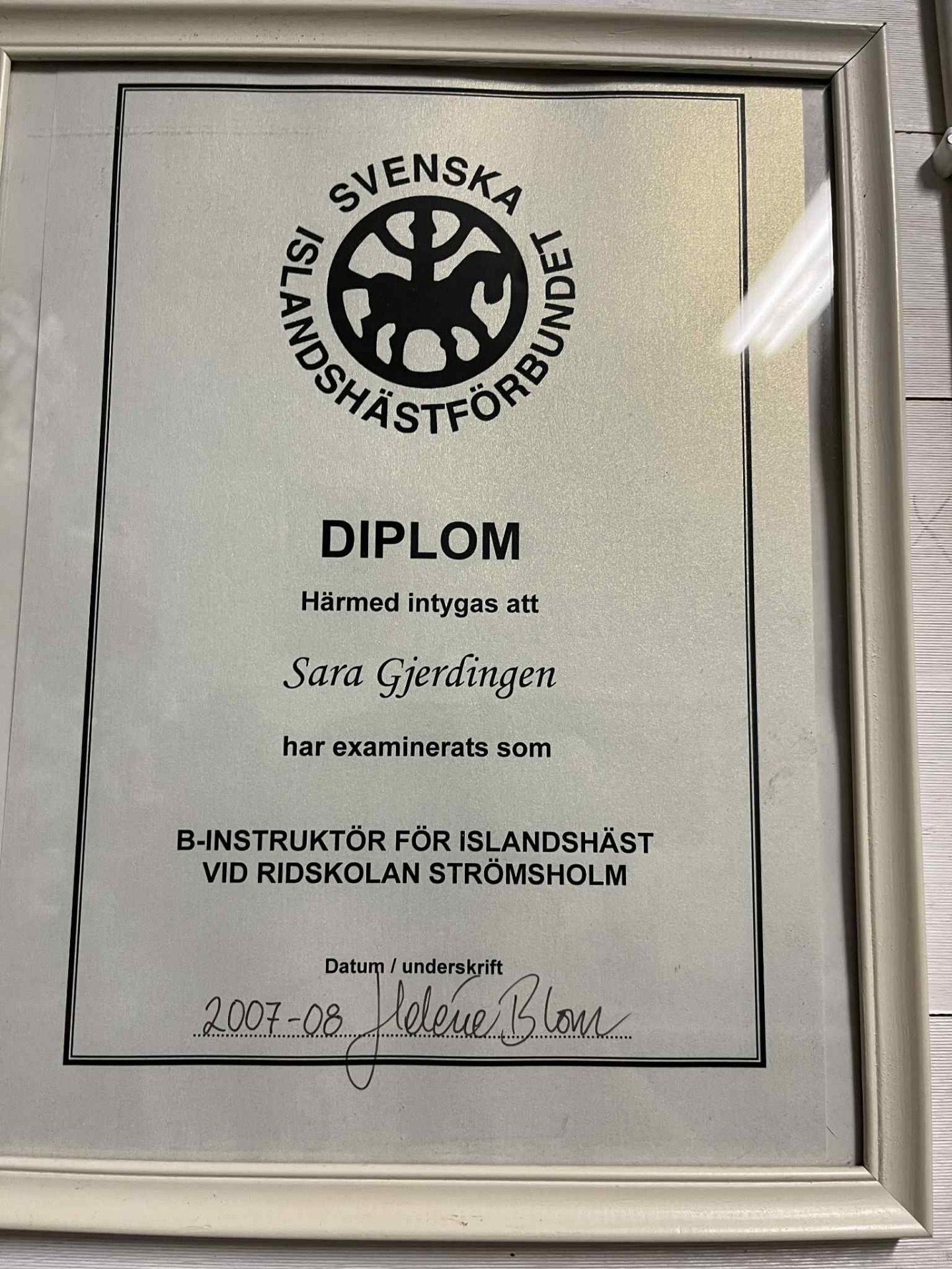 Jag fick min första islandshäst 1996. Sedan 2008 är jag utbildad ridlärare 1 för Islandshästar. 2009 gjorde jag C-tränar provet med godkänt resultat. Idag driver jag ett stall i Uppsala som specialiserar sig på just islandshästar. Där jag erbjuder ridlektioner på mina välutbildade hästar, men även för dig som har egen häst. Jag har jobbat med islandshästar sedan år 2006 både i Sverige och på Island. Som C-tränare erbjuder jag tjänster som inridning och hantering av unga hästar.